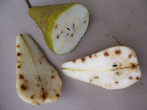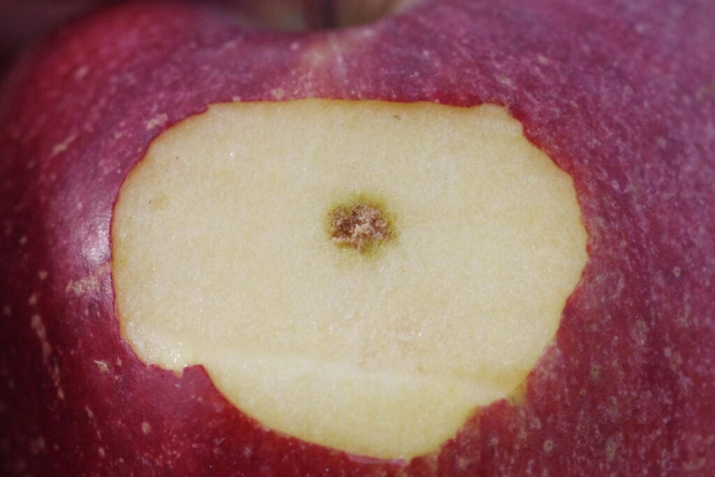 التنقر المر (Bitter Pit) وبقع الفلين (Cork Spot): يظهر في التفاح والكمثرى، وهو انهيار خلوي تحت القشرة يؤثر على الجودة التخزينية.