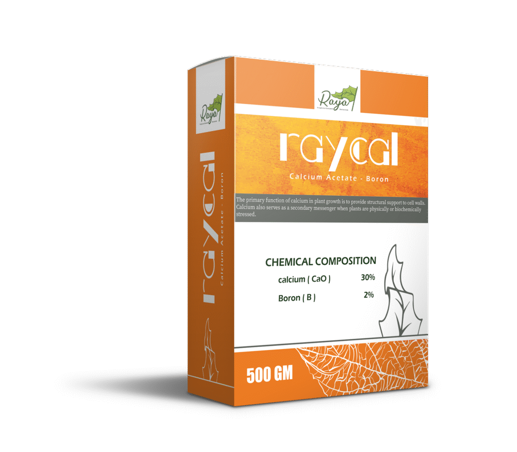 أما Ray Cal راي كال فيحتوي على 30% أكسيد كالسيوم و2% بورون في تركيبة متوازنة من أسيتات الكالسيوم والبورون تعمل على تحسين انتقال الكالسيوم داخل النبات ورفع جودة التزهير واللون والطعم،
