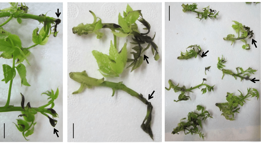 احتراق الأطراف (Tip Burn): يصيب الخس والخضروات الورقية، حيث تجف وتلتوي أطراف الأوراق الحديثة.