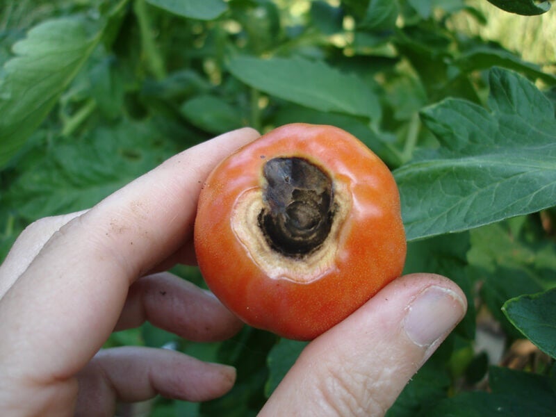 عفن الطرف الزهري (Blossom End Rot – BER): أشهر مثال على الطماطم والفلفل والباذنجان، حيث تظهر بقع ميتة على الثمار النامية لعدم وصول الكالسيوم الكافي.