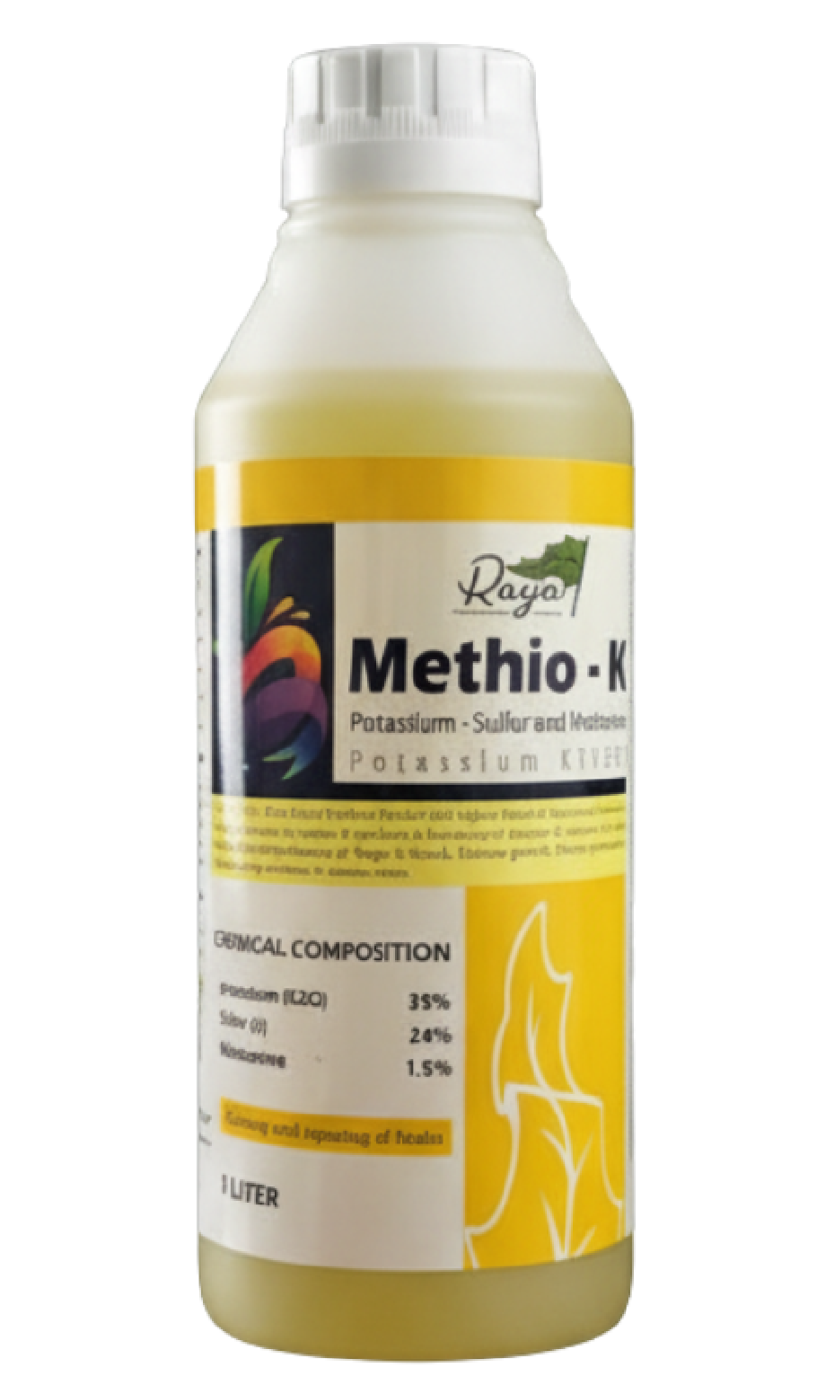 • يحتوي المركب على البوتاسيوم والكبريت والميثيونين في صورة عالية الذوبان وسهلة الامتصاص سواء عن طريق الأوراق أو الجذور.