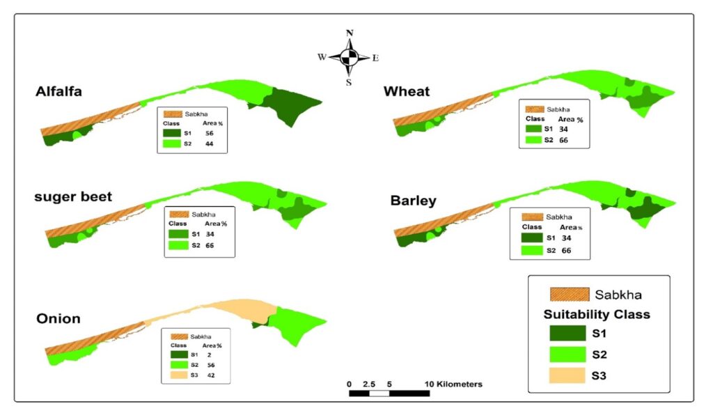 - تقييم ملاءمة الأرض للمحاصيل المختلفة وفق متطلبات كل محصول