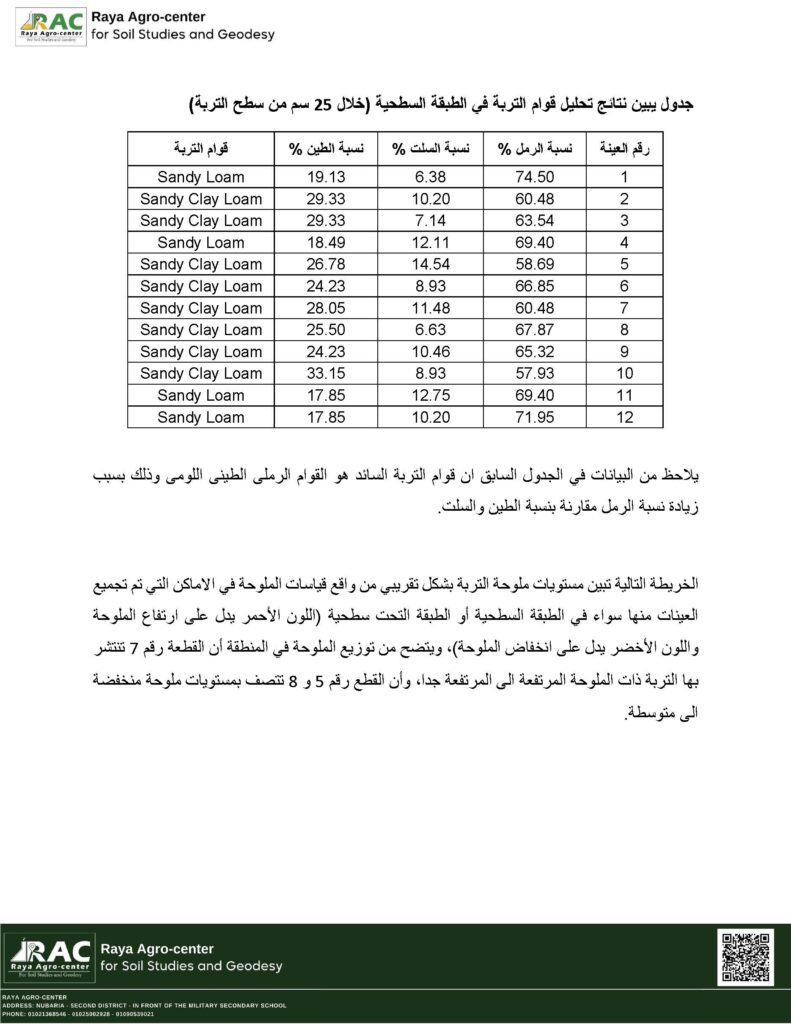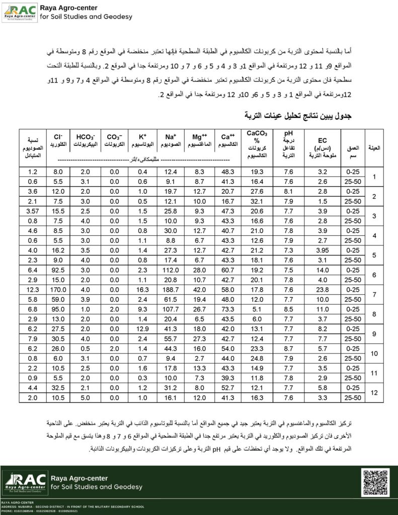 (طبقات جيرية، جبسية، صماء، طفلة، أو غيرها) - تقييم عمق التربة الفعال، النفاذية، الصرف، والقدرة على الاحتفاظ بالمياه